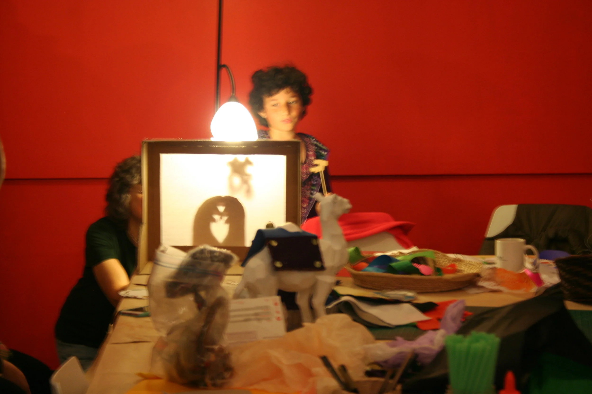 Now let me tell you, shadow puppets are magical, there's no two ways about it. If you feel inspired to whip up your own version, know that even something fairly simple can accomplish a lot. We got some inspiration from this how-to on the Eric Carle museum blog. The blog is worth checking out in any case if you haven't seen it yet.