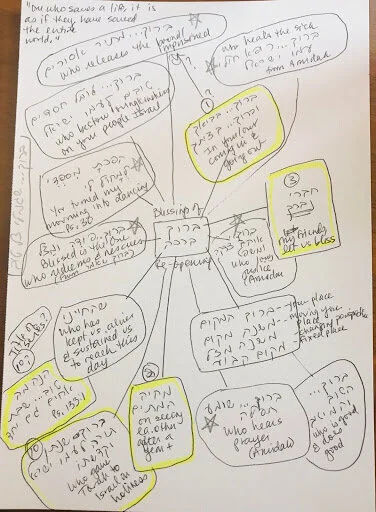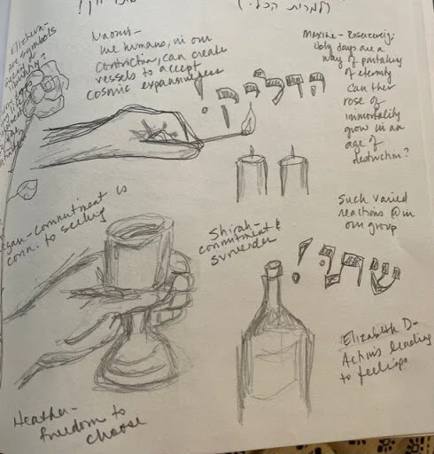 I was nourished by...inspiration from the group; working with my havruta/partner, Naomi; going deep, using poetry, mindfulness, making with new materials; exploring the interplay between the Sefirot and the creative process; cheering each other on! Mind mapping...Zelda...seeking connections...tefillah...weaving ideas...Googling...doodling… journaling